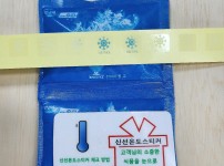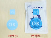 냉장, 신선 온도 체크 라벨입니다.가역 제품으로 5℃이하로 온도가 내려가면 찥은 파란색으로 색상이 변합니다.냉장고..